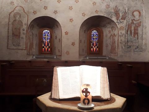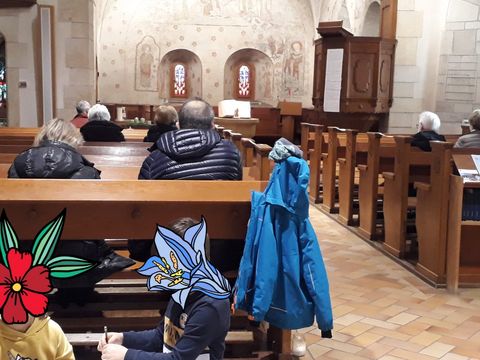 L’église de Courtelary est notre lieu de culte. Avec de magnifiques fresques, il y règne une atmosphère chaleureuse ! Nous y avons également installé une salle de méditation, pour des moments partagés et un coin pour les enfants.